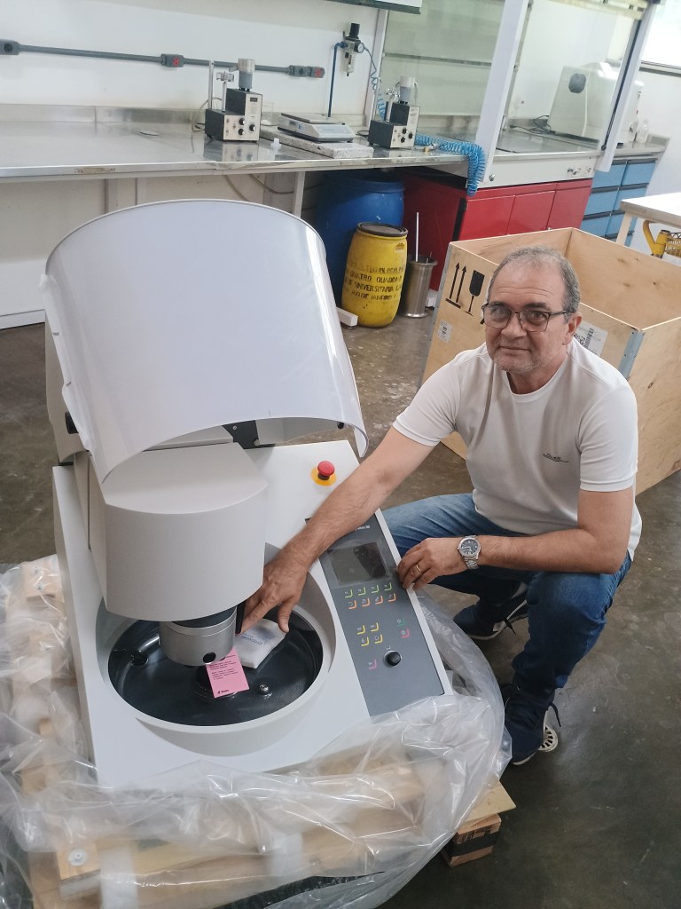 A nova politriz irá se juntar a nossas velhas companheiras TegraPol-15 e Tegramin-20, essa última atualmente em manutenção. Mais do que uma renovação, essa aquisição irá ampliar nossa capacidade de produção de seções polidas e permitirá a preparação de lâminas delgadas.